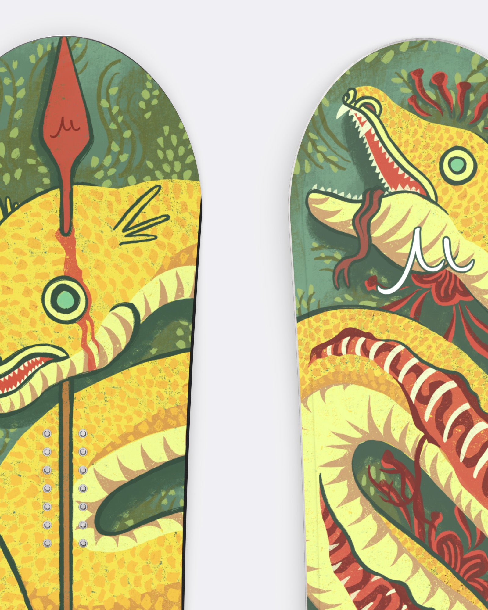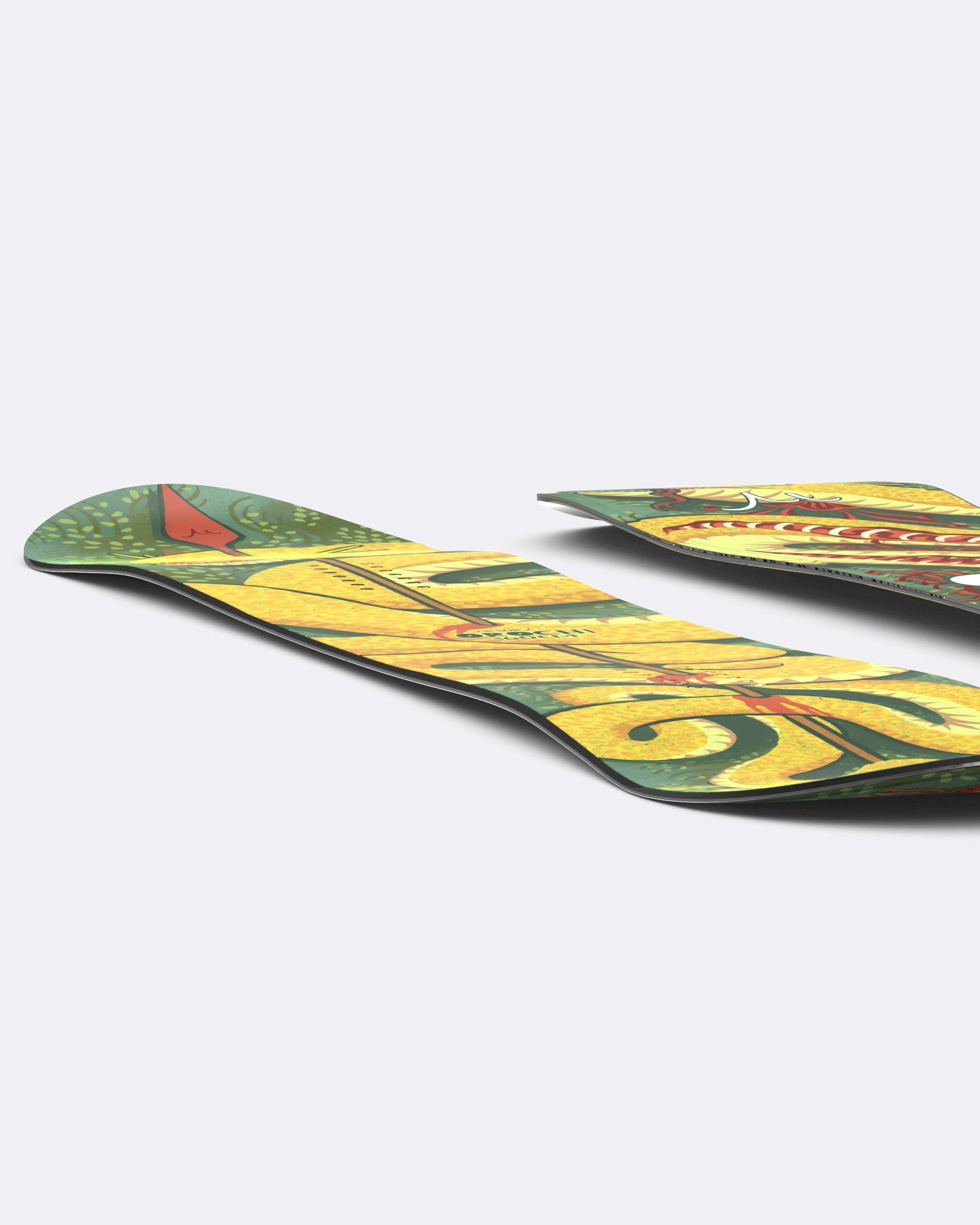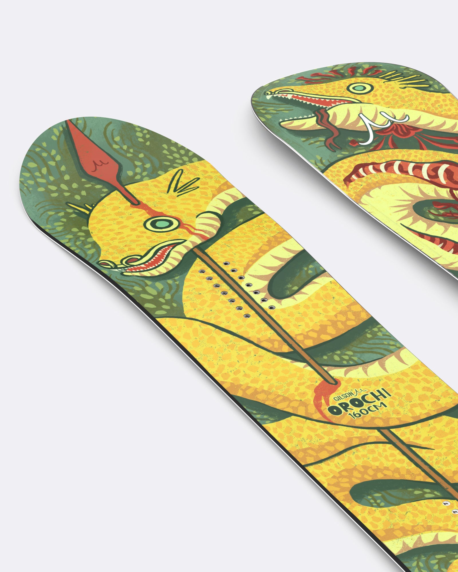 The Orochi is a Limited Edition collab with Japanese artist Tatsuya King, bringing a mythical serpent to life on snow. Built on Gilson’s hybrid camber all mountain snowboard, this board blends precision carving with smooth float and playful versatility. Designed for riders who want a board as powerful and legendary as its artwork, the Orochi is ready to conquer every corner of the mountain.