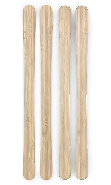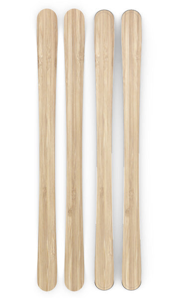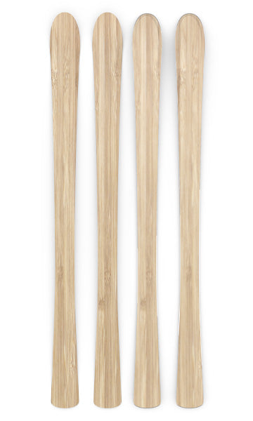 Ski dimensions by length. Measurements are approximate and may vary slightly due to handmade construction.